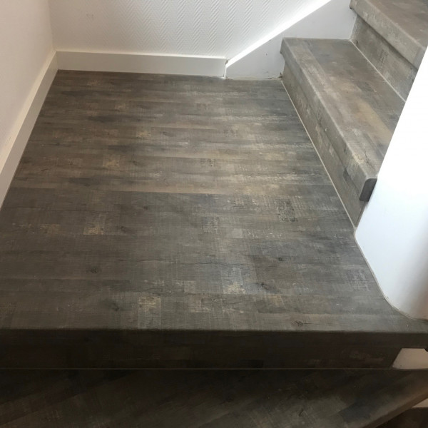 Die Austrittsstufe ist die oberste Stufe einer Treppe, sie hat eine Nut, in der unser Podestmaterial (oder handelsübliches Laminat) eingefügt wird. Sie brauchen bei dieser Austrittsstufe keine Schiene verwenden, also ein nahtloser Übergang auf Podeste, Flure und Zimmer.